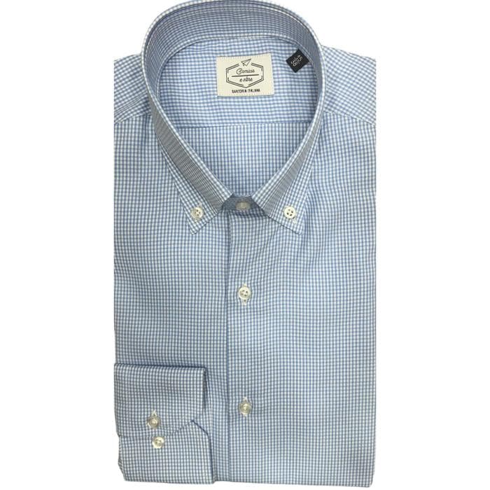 Camicia 100% Cotone Quadretto Celeste Button Down