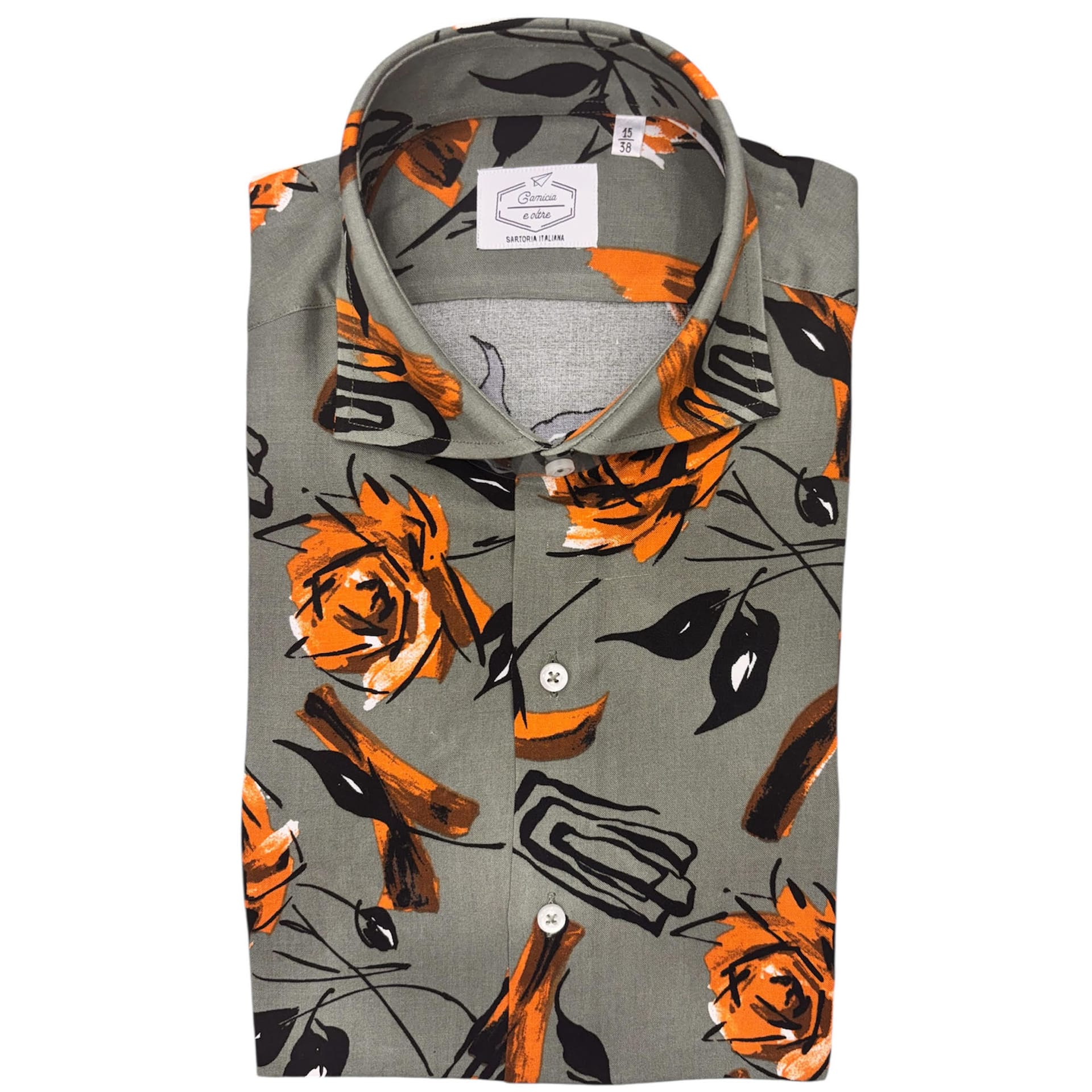 Camicia da uomo in morbida cotone effetto seta caratterizzata da una vibrante fantasia astratta su un fondo verde. Realizzata con tessuto di alta qualità. Fitting comodo, vestibilità Slim/Regular. Stiro facile.