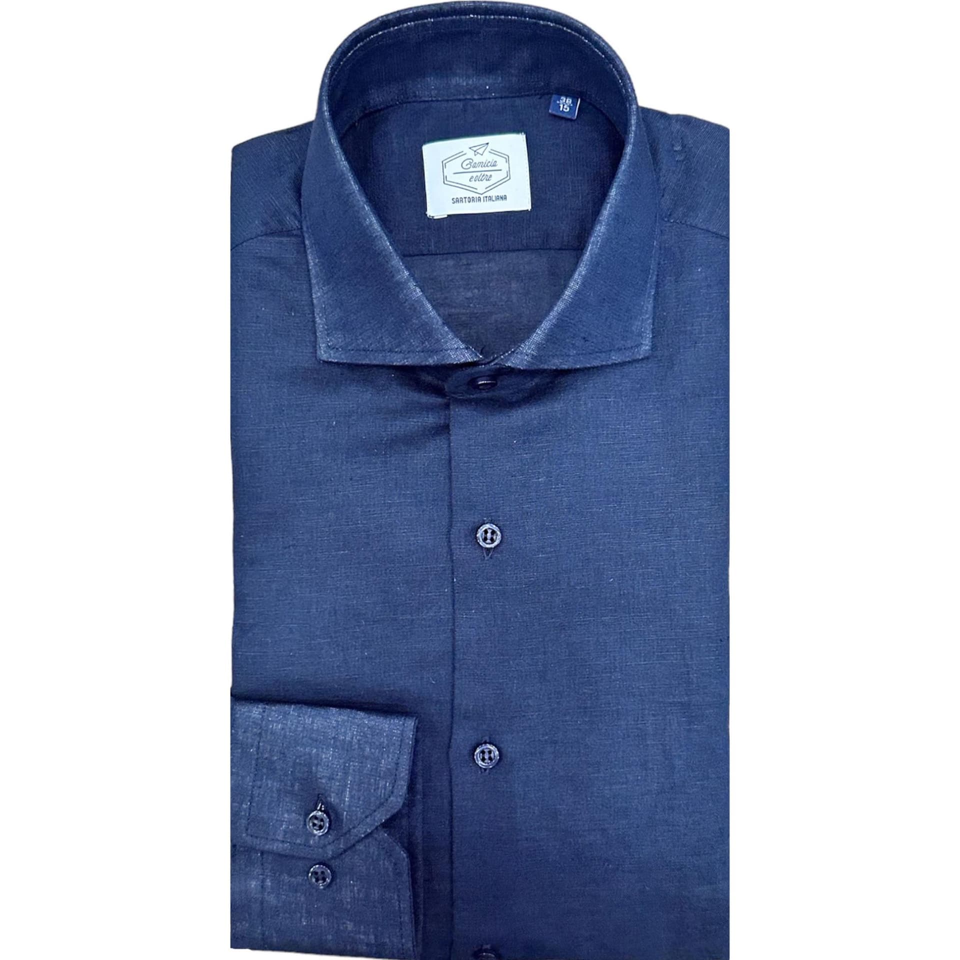 Camicia blu in uomo in lino della collezione estiva di Camicia e Oltre. Realizzata in puro lino 100%, un tessuto fresco e leggero adatto alla stagione estiva. Il colletto classico alla francese la rende perfetta anche per eventi più formali. Fitting comodo grazie alla vestibilità Slim/Regular. Manica Lunga. Stiro facile.