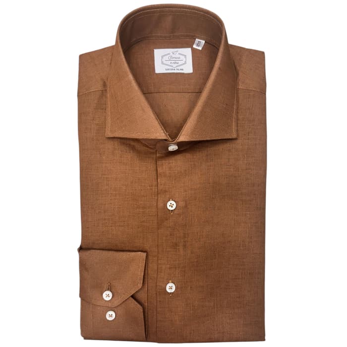 Camicia marrone da uomo in lino della collezione estiva di Camicia e Oltre. Realizzata in puro lino 100%, un tessuto fresco e leggero adatto alla stagione estiva. Il colletto classico alla francese la rende perfetta anche per eventi più formali. Fitting comodo grazie alla vestibilità Slim/Regular. Manica Lunga. Stiro facile.