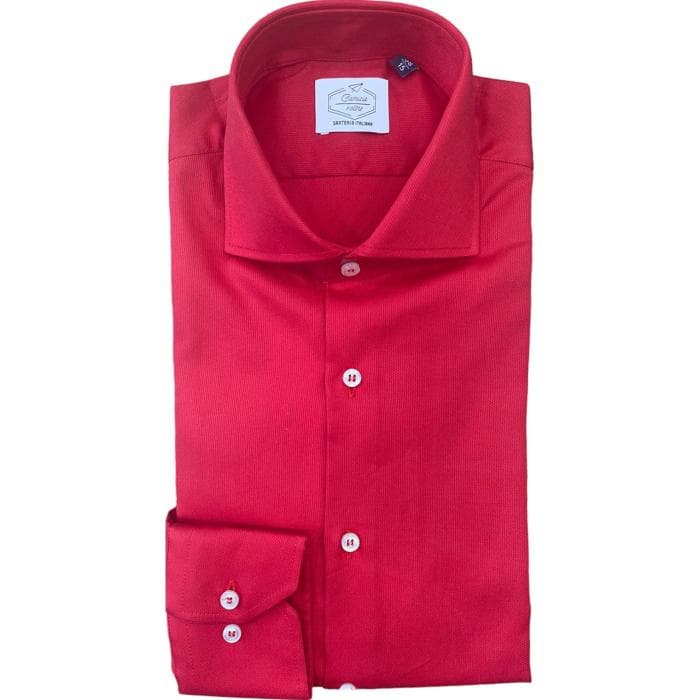 Camicia uomo tinta unita rossa, per chi ama distinguersi dando un tocco di colore ai propri outfit. Realizzata in puro cotone, si adatta perfettamente alle forme del corpo per un fitting comodo. Colletto alla francese. Manica lunga. Stiro facile. Vestibilità Slim/Regular.