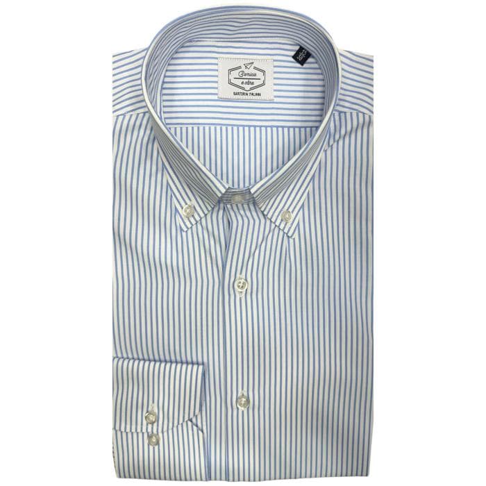 Camicia 100% Cotone Riga Celeste Collo Button Down
