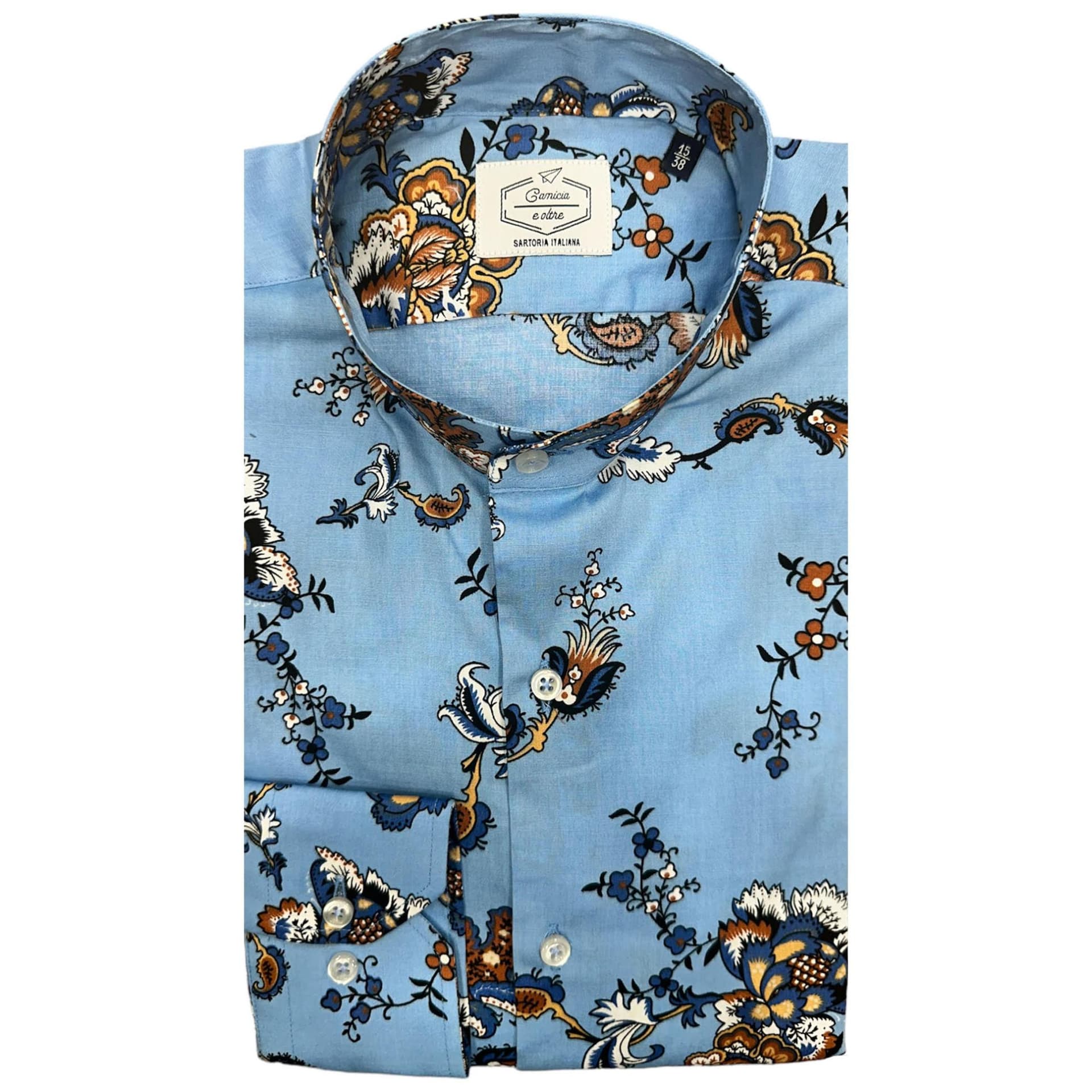 Camicia 100% Cotone Floreale Collo Coreano