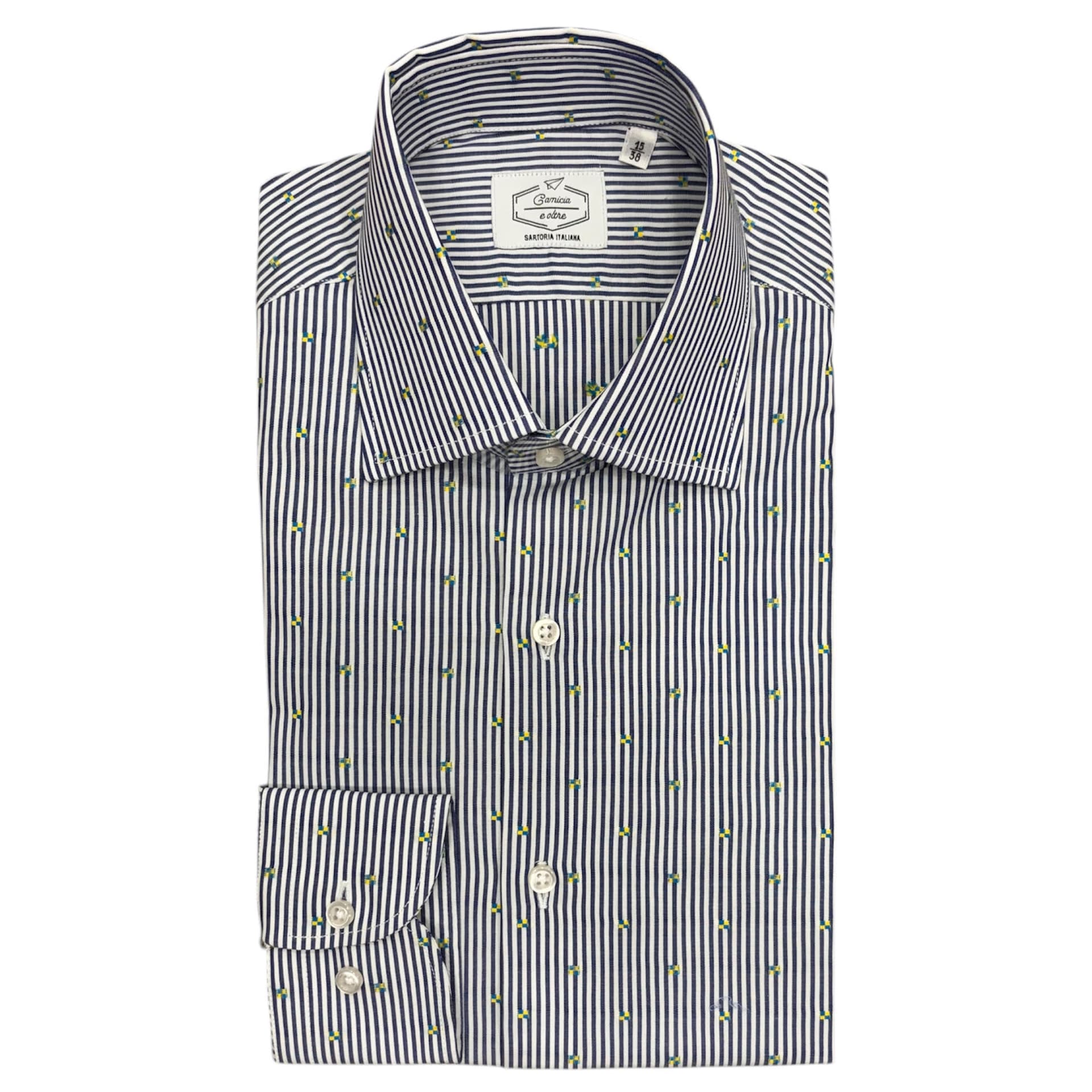 Camicia 100% Cotone Righe Blu Collo Italiano