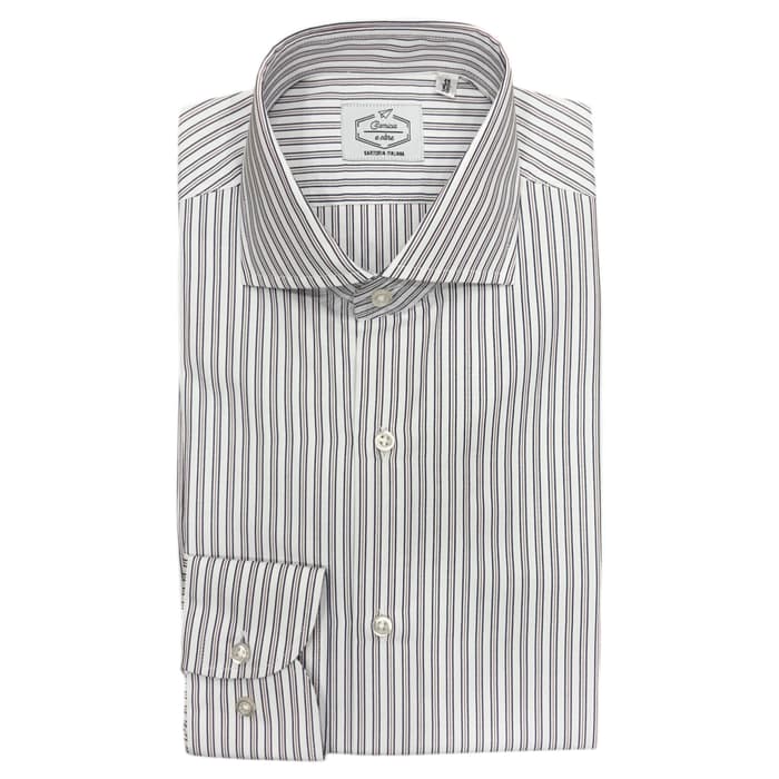 Camicia classica caratterizzata da una tramatura a righe colorate, Realizzata in puro cotone 100%. Capo versatile, fresco e comodo, perfetto per l'ufficio. Ottima praticità grazie allo stiro facile e veloce. Colletto alla francese cucito a mano accuratamente. Vestibilità Slim/Regular.