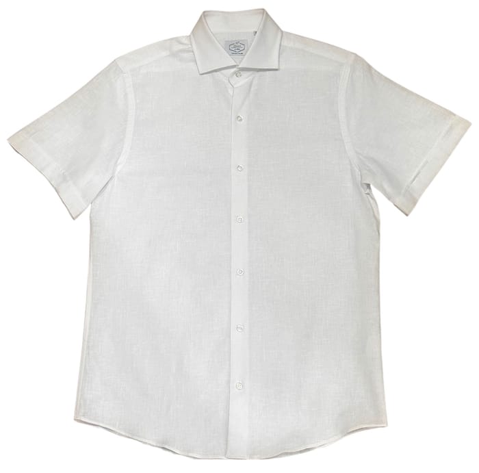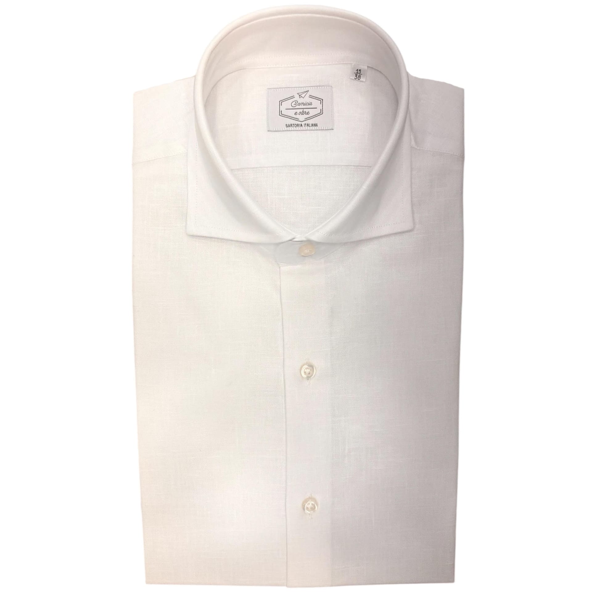 Camicia Bianca da uomo in lino della collezione estiva di Camicia e Oltre. Realizzata in lino e cotone, un tessuto fresco e leggero adatto alla stagione estiva. Il colletto classico alla francese e le maniche corte rende questa camicia perfetta per le giornate estive. Fitting comodo grazie alla vestibilità Slim/Regular. Manica Corta. Stiro facile.