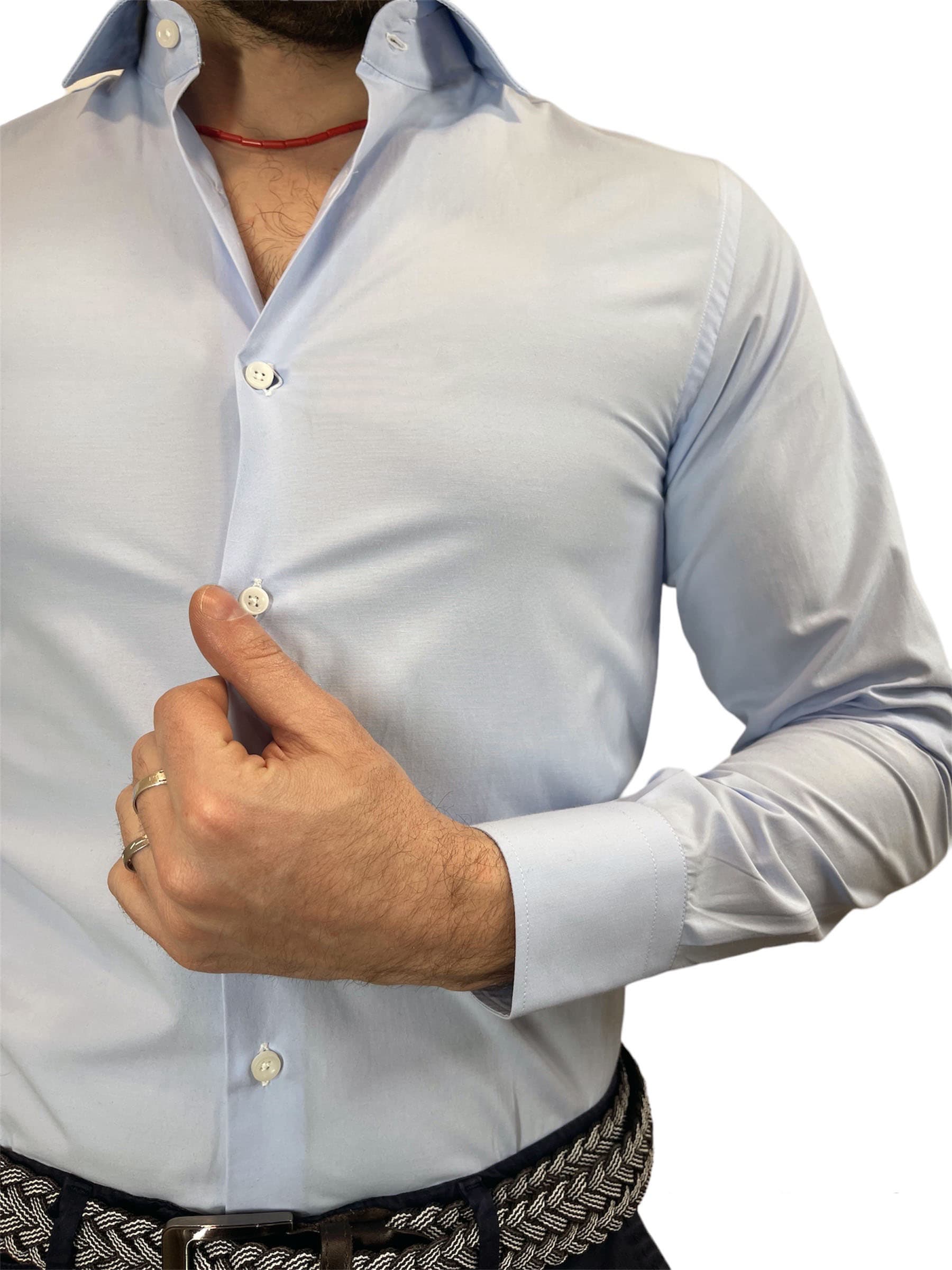 Camicia classica  Realizzata in puro cotone 100%. Capo versatile, fresco e comodo, perfetto per l'ufficio. Ottima praticità grazie allo stiro facile e veloce. Colletto alla francese cucito a mano accuratamente. Vestibilità Slim/Regular.