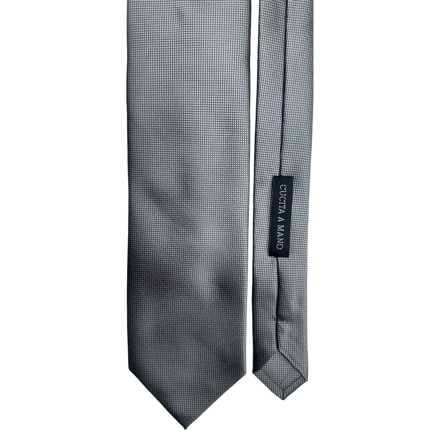 Cravatta in PET riciclato effetto raso Grigio Antracite. La tinta unita rende questa cravatta un accessorio versatile, ideale per aggiunge un tocco di colore ai tuoi outfit più eleganti. Larghezza pala, disponibile da 5 cm o 8 cm. Realizzata a mano secondo l'Antica Tradizione Sartoriale Napoletana.
