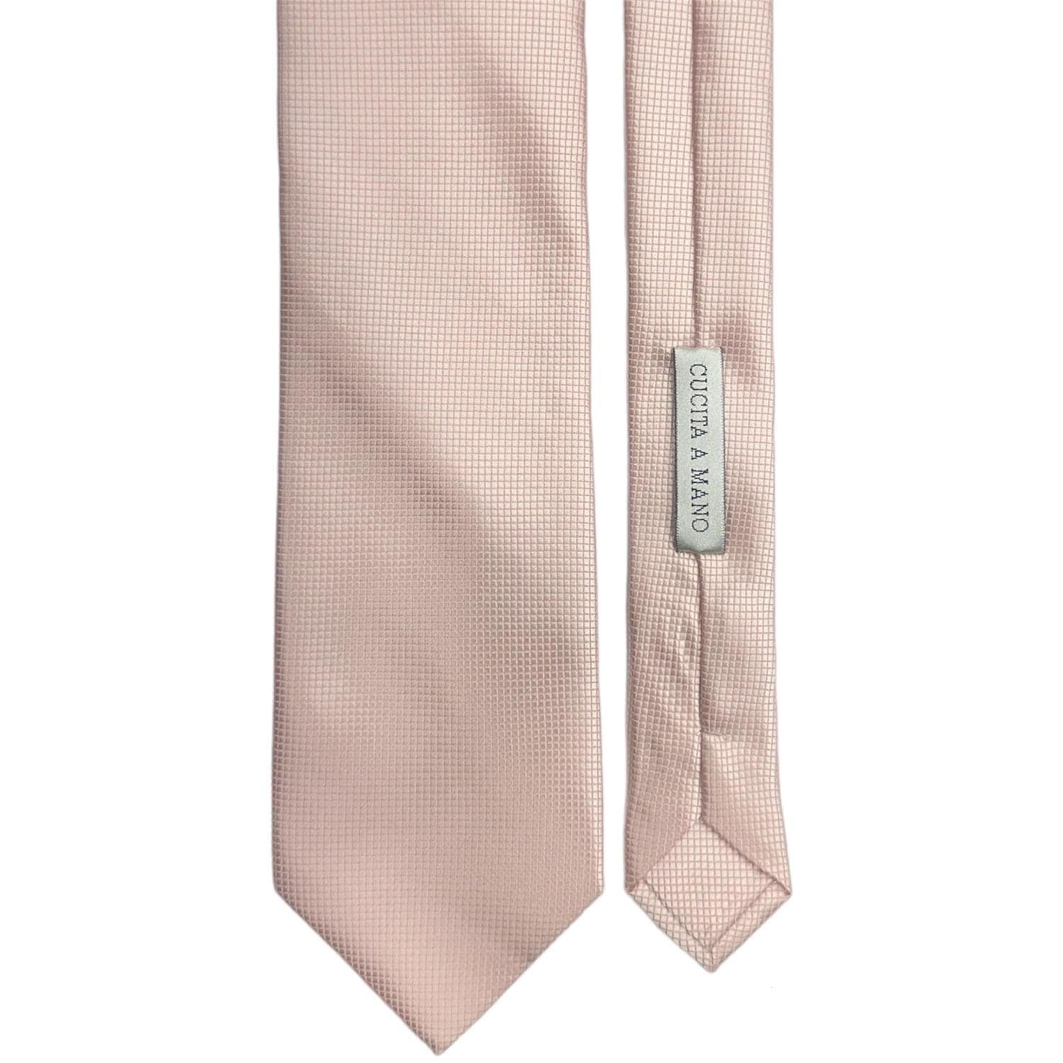 Cravatta in PET riciclato colore Rosa. La tinta unita e la trama diamantata rendono questa cravatta un accessorio versatile, ideale per aggiunge un tocco di colore ai tuoi outfit più eleganti. Larghezza pala, disponibile da 5 cm o 8 cm. Realizzata a mano secondo l'Antica Tradizione Sartoriale Napoletana.