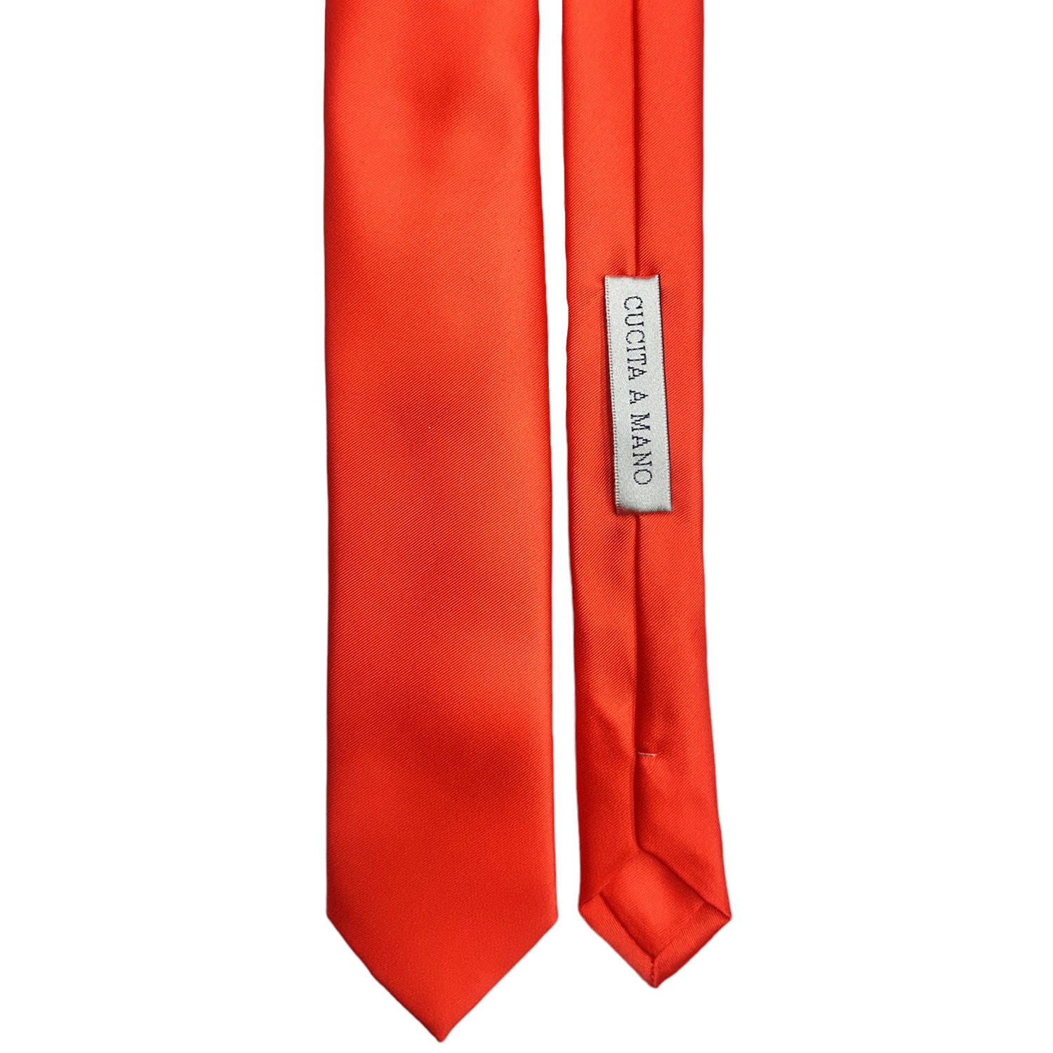 Cravatta in PET riciclato colore Rosso. La tinta unita rende questa cravatta un accessorio versatile, ideale per aggiunge un tocco di colore ai tuoi outfit più eleganti. Larghezza pala, disponibile da 5 cm o 8 cm. Realizzata a mano secondo l'Antica Tradizione Sartoriale Napoletana.