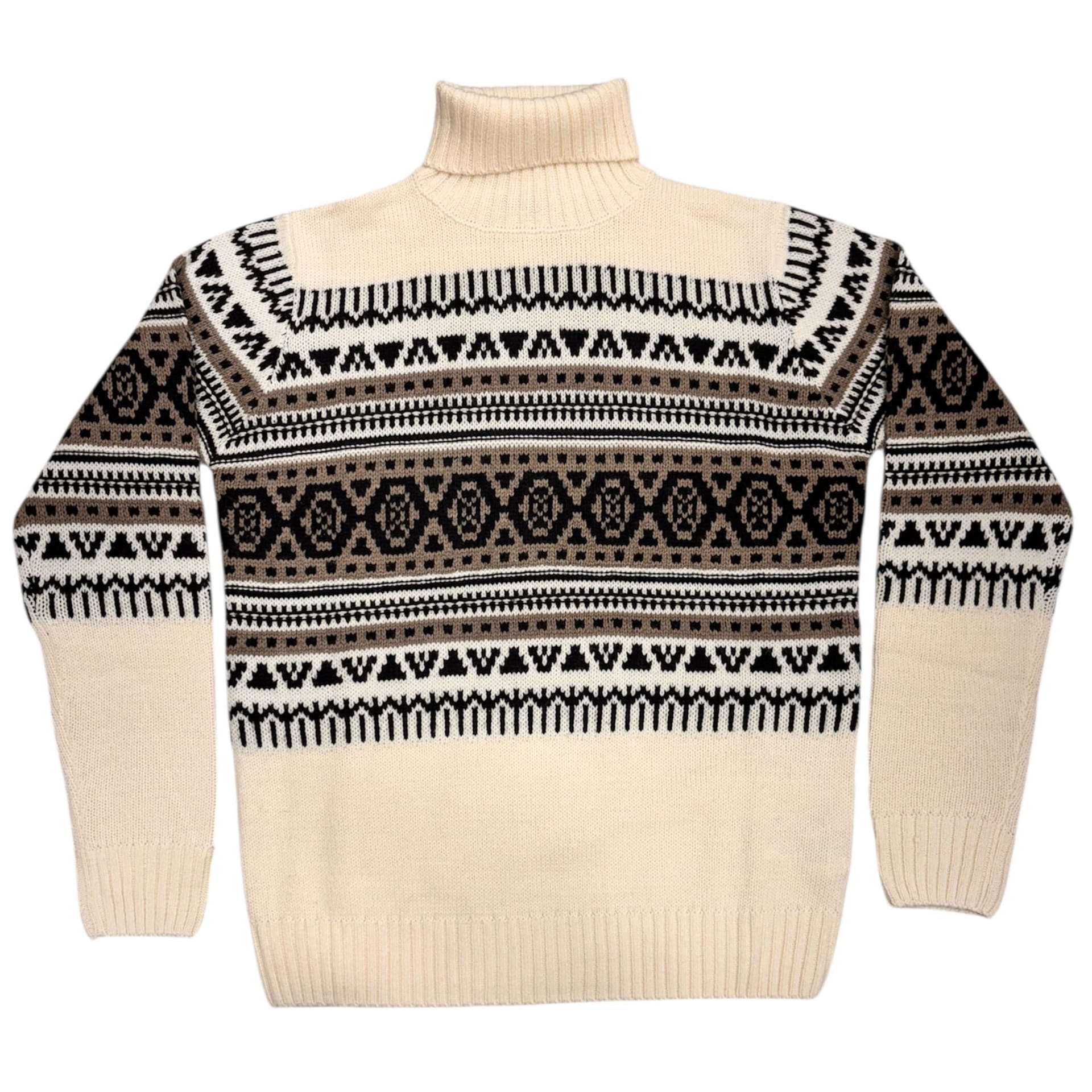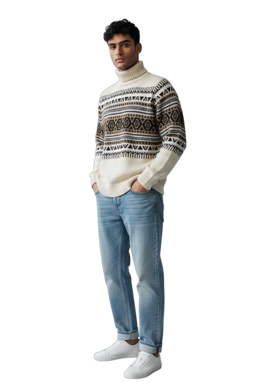La lavorazione jacquard, eseguita con maestria, crea una fantasia raffinata e tridimensionale, rendendo ogni capo unico. Il collo alto avvolgente e le finiture a costine completano un look sofisticato e versatile, perfetto per uno stile casual chic o per dare personalità agli outfit più eleganti.