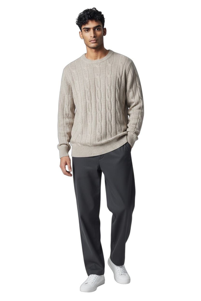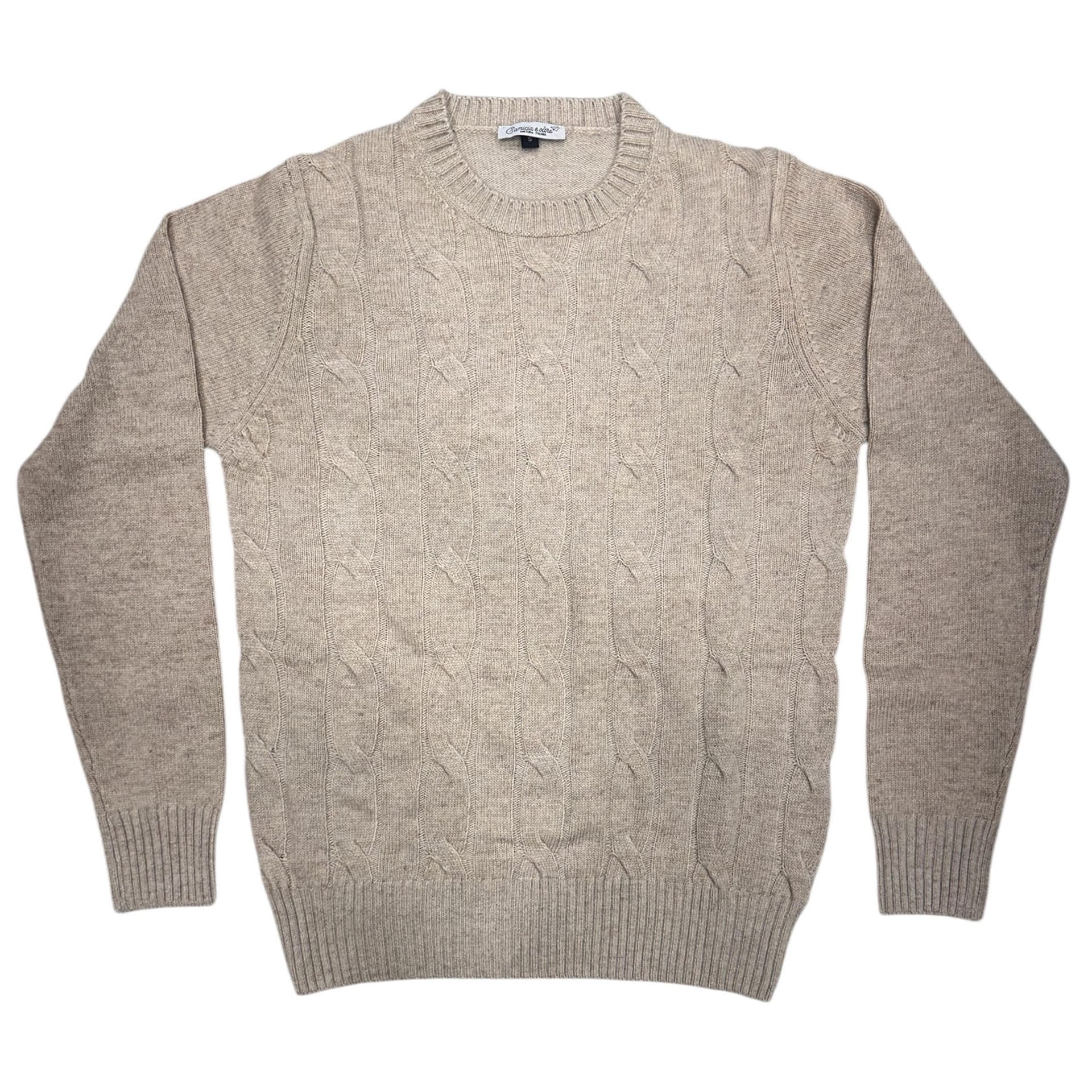 Maglia Girocollo in Cashmere Treccia Beige