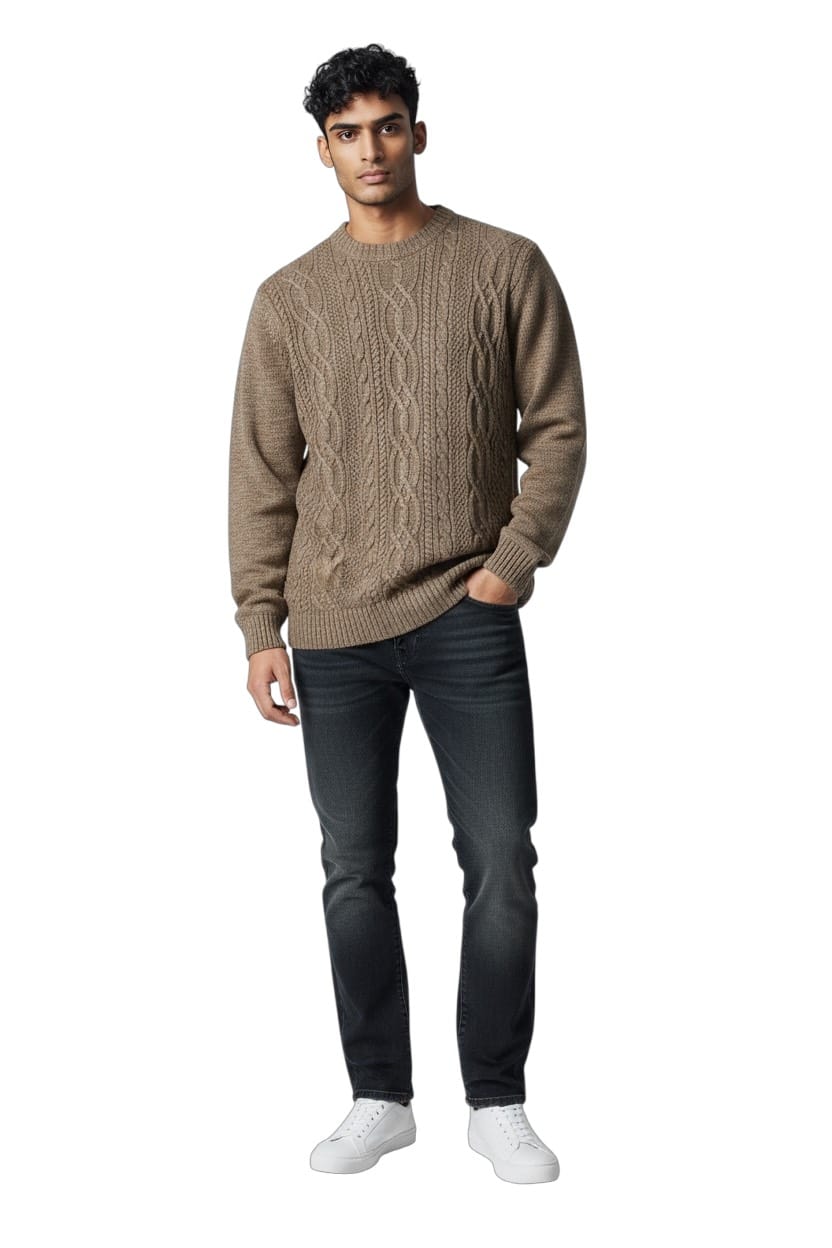 Maglia Girocollo in Lana Treccia Corda