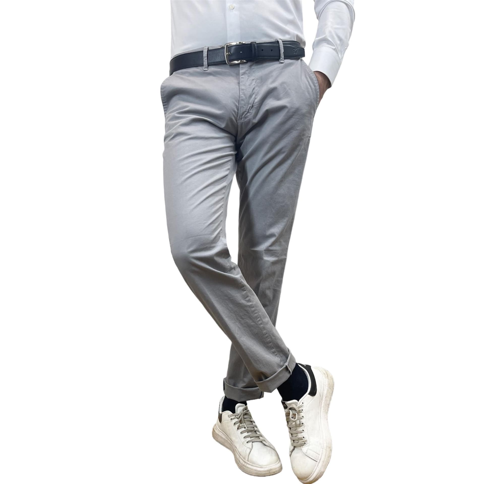 Pantaloni da uomo colore Grigio chiaro realizzati interamente in cotone di tipo Stone Wash. Ideali per creare outfit casual chic o per essere abbinati a capi più formali per un look raffinato e versatile anche nelle giornate più calde.