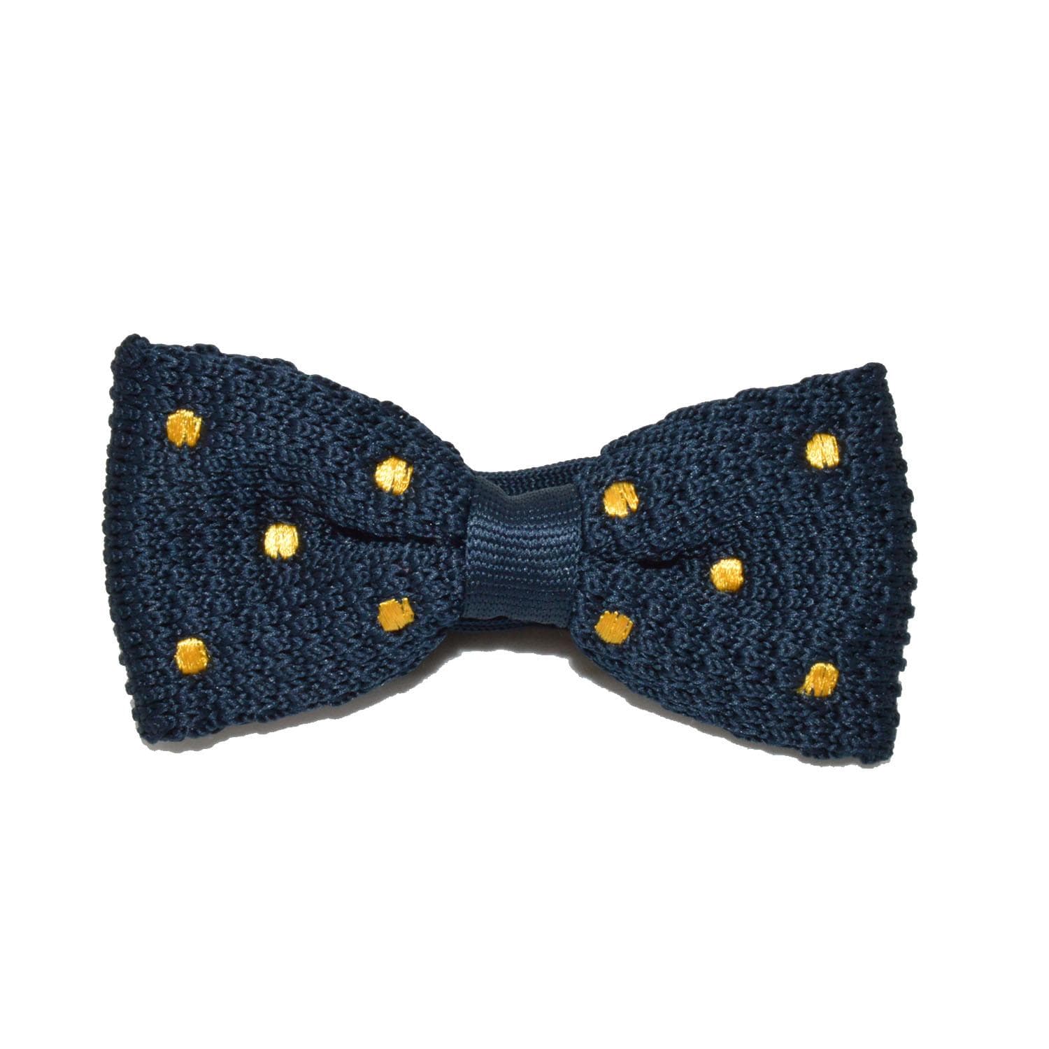 Papillon intrecciato in maglina caratterizzato da una fantasia a Pois Gialli su sfondo Blu Scuro, perfetto per completare il tuo outfit. Modello con fascetta regolabile, già annodato per una vestibilità perfetta. Bordo dritto per un tocco ricercato e originale, perfetto per completare i tuoi look più formali o per osare abbinandolo ai tuoi look casual.